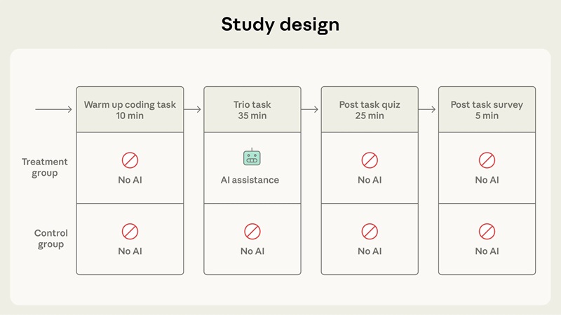 On ne sait pas encore si ce transfert cognitif peut empêcher les personnes de développer leurs compétences au travail ou, dans le cas du codage, de comprendre les systèmes qu'elles construisent. Une nouvelle étude d'Anthropic, un essai contrôlé randomisé mené auprès de développeurs de logiciels, examine cet inconvénient potentiel de l'utilisation de l'IA au travail. Ils ont constaté que l'utilisation de l'assistance IA entraînait une baisse statistiquement significative de la maîtrise.