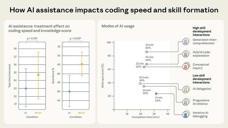 Sources : How AI Impacts Skill Formation, The Effects of Generative AI on High-Skilled Work: Evidence from Three Field Experiments with Software Developers